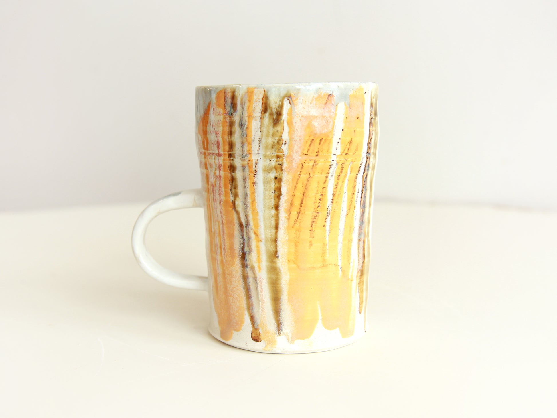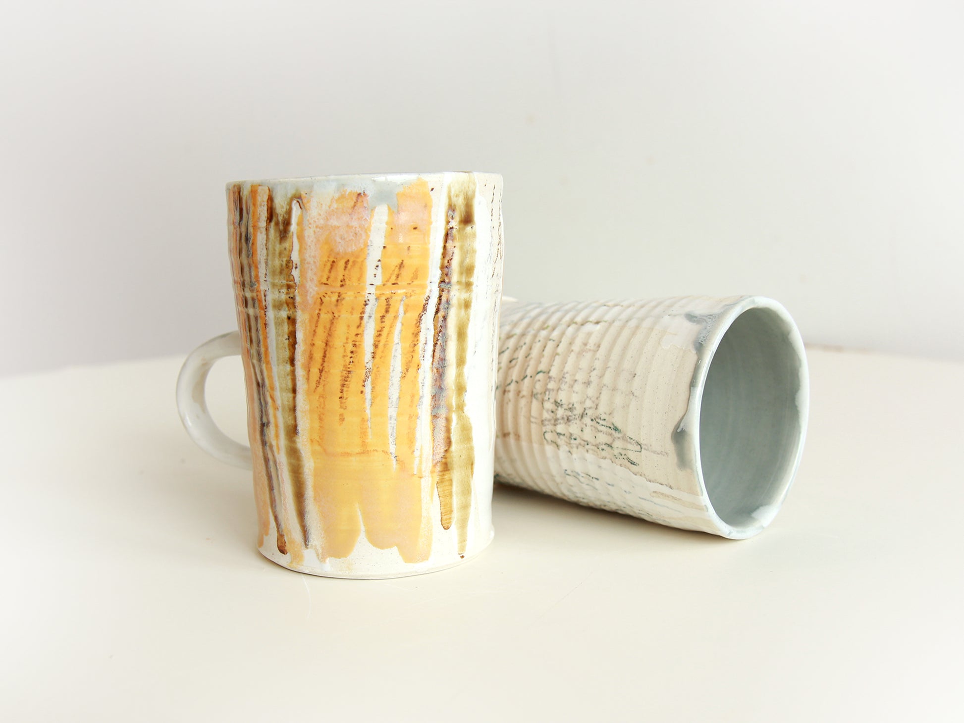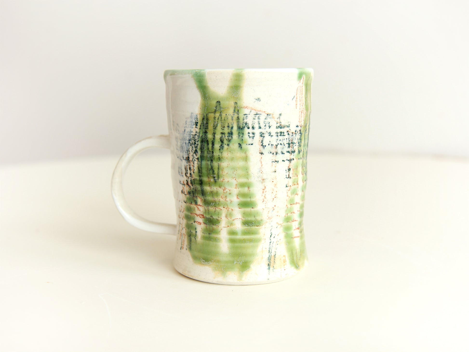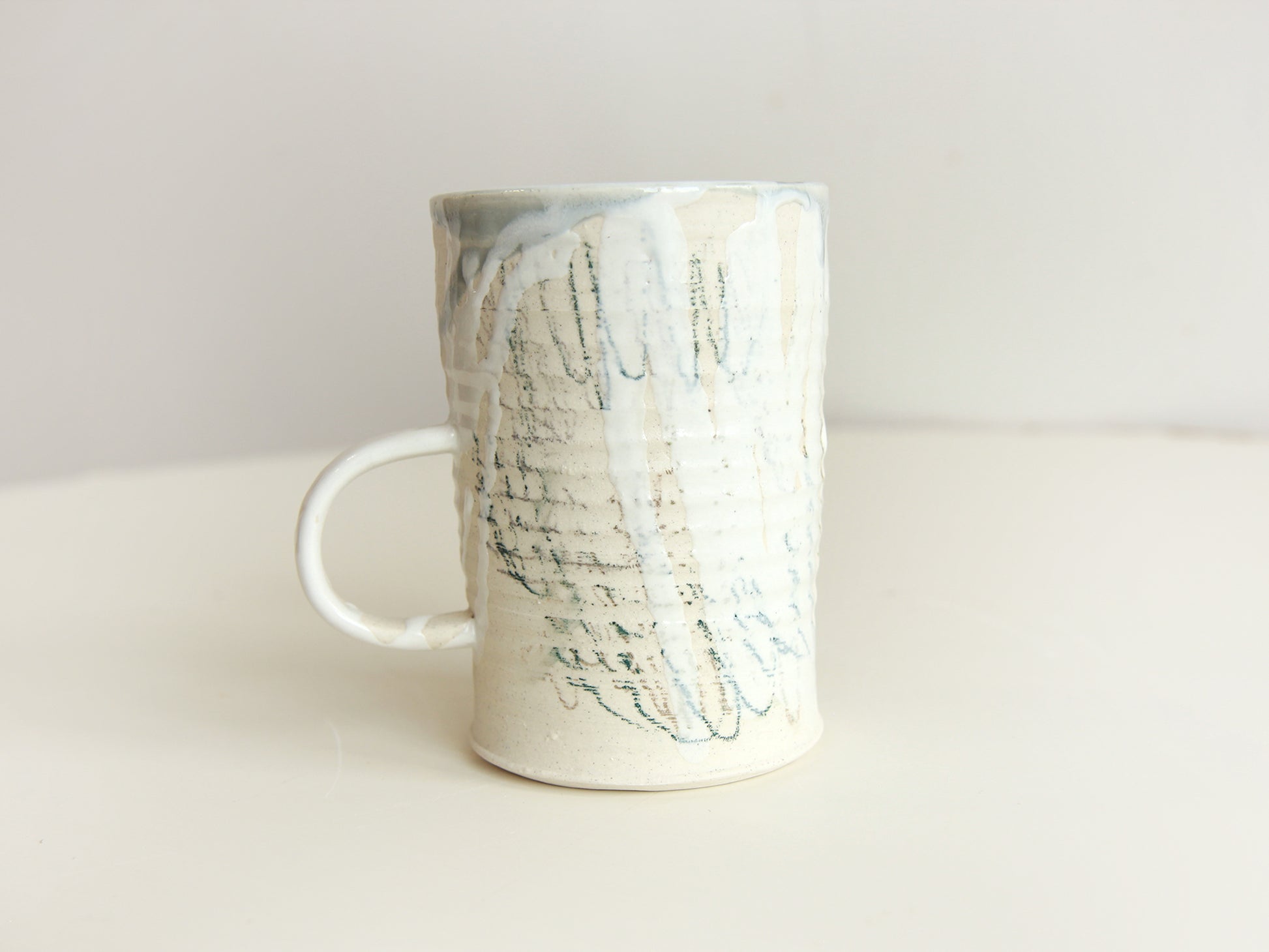 All hand made in our Toronto studio. Mid fire porcelain. All our wares are dishwasher and microwave-proof. Approximate Dimensions- Height: 12.5cm, Outside Diameter: 9cm, Inner Diameter: 8.5cm, Volume: 13oz. Quick heads up, these are all handmade and one-of-a-kind pieces so the photos on this page will differ slightly from the actual items.